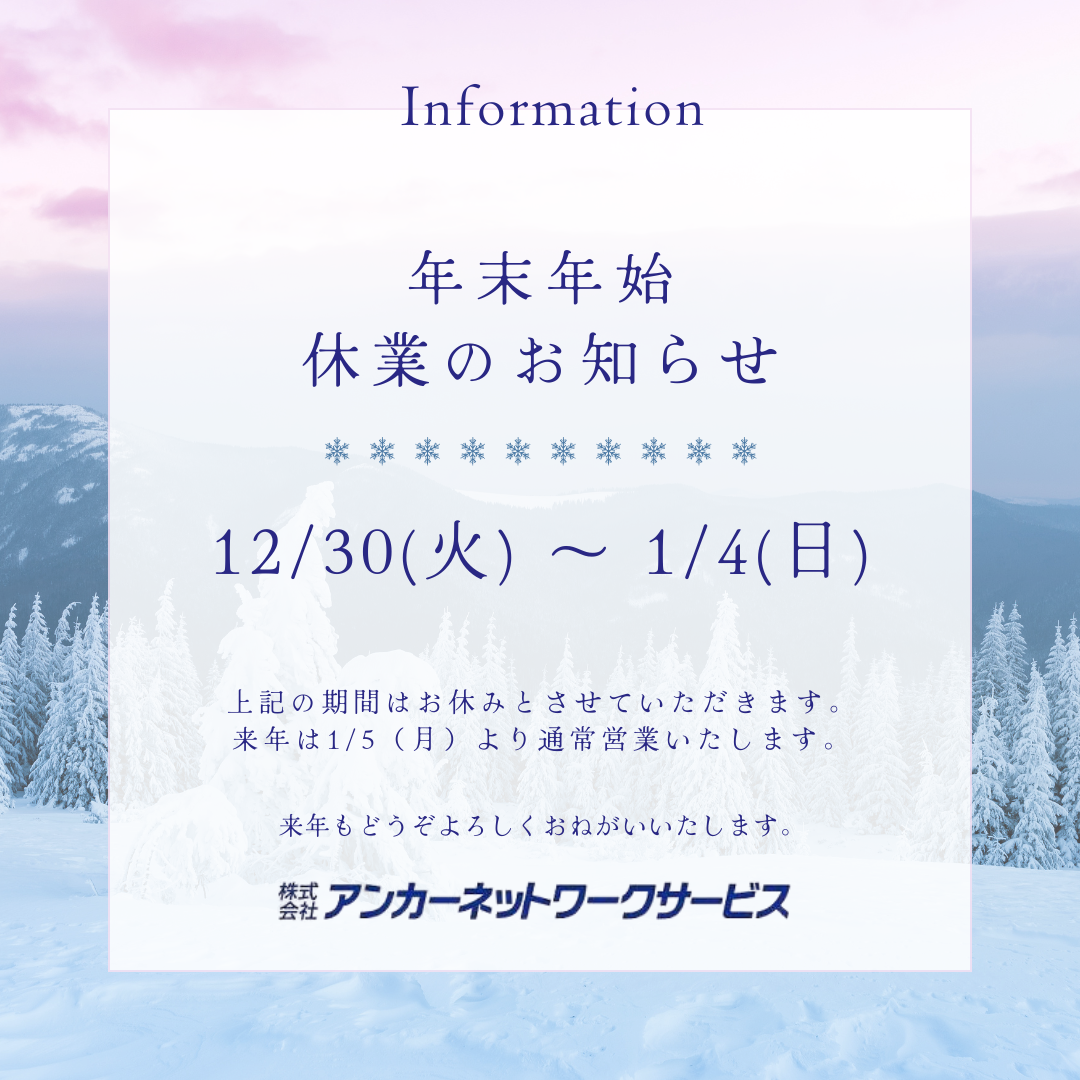 年末年始休業のお知らせ