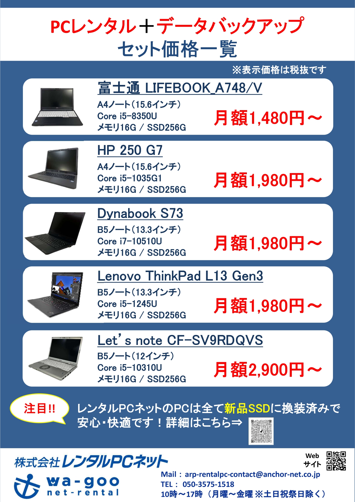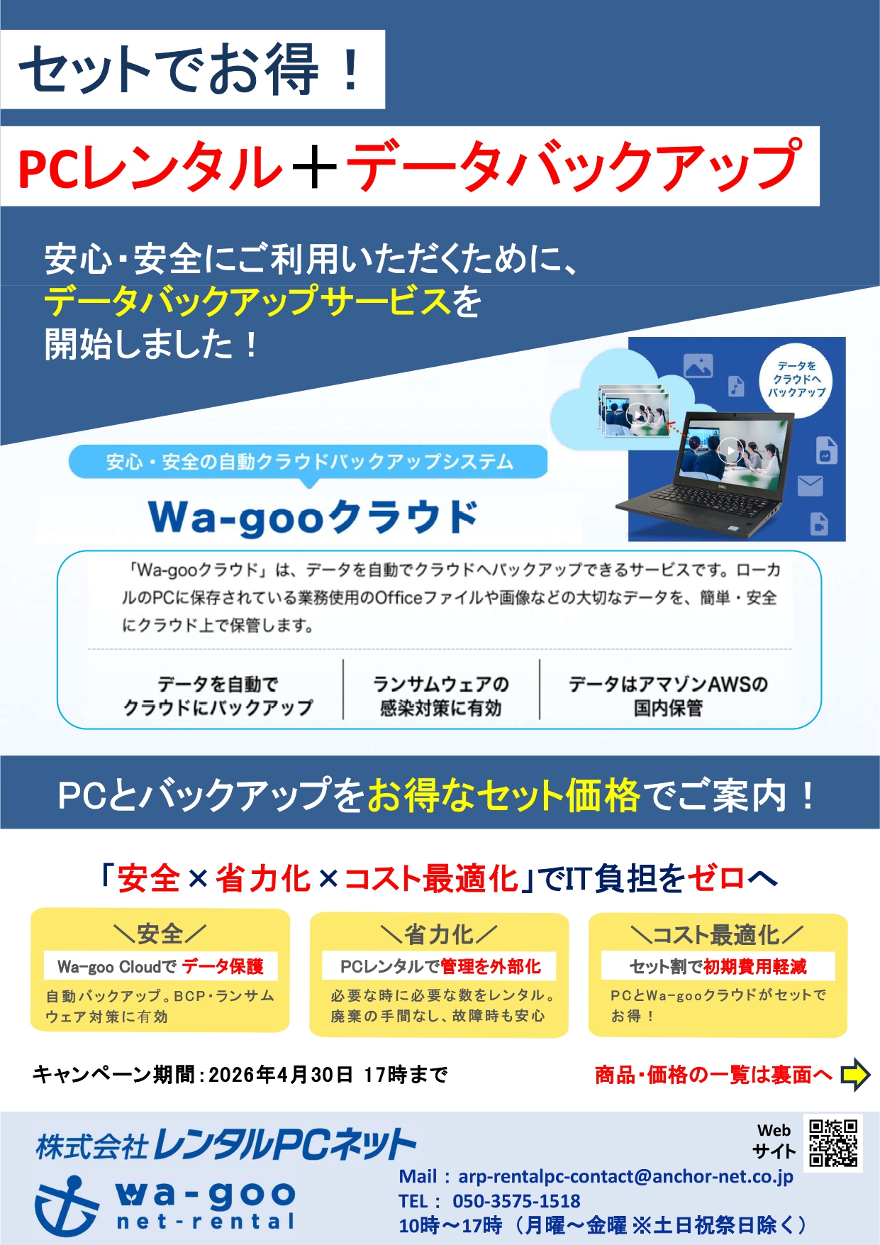 PCレンタルとクラウドバックアップをセット価格でご提供することで、